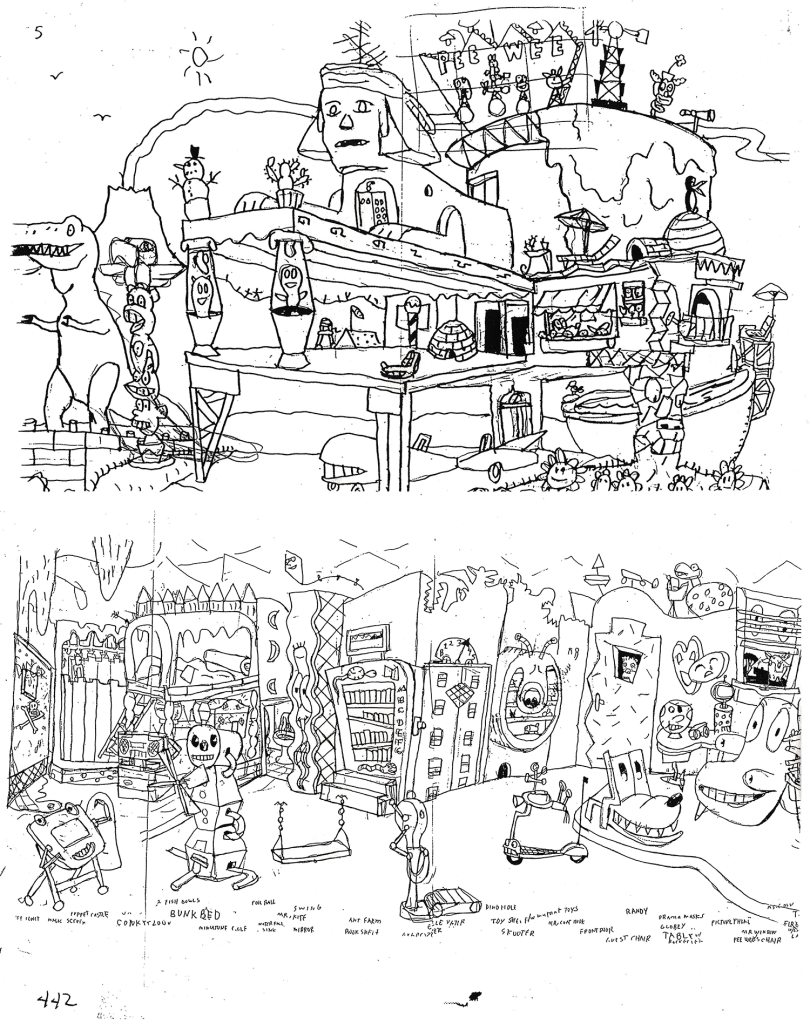 This is my original Jem! We’ve been through a lot together.A page from the sketchbook of Henri Matisse at the Matisse Museum – Nice, FranceClose up of Basket with Oranges by Henri Matisse – 1913Henri Matisse – Swimming mermaid study – 1948Some of Gary Panter’s incredible sketches of Pee-Wee’s Playhouse set designs.Snippet of the beautiful product design on the VHS box set of Pee-Wee’s Playhouse.